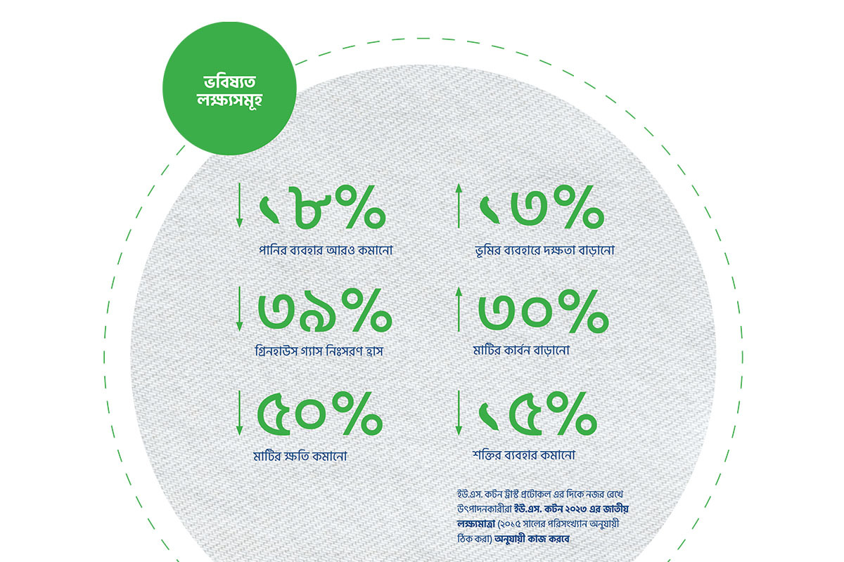 - টেকসই তুলা উৎপাদনের জন্য বিজ্ঞান-ভিত্তিক লক্ষ্যগুলোর বিপরীতে পরিমাপযোগ্য ও যাচাইযোগ্য উপাত্ত।